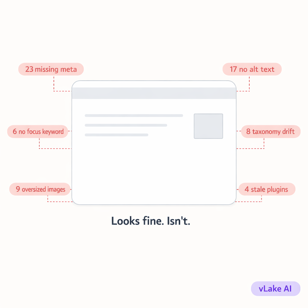 We’ve connected vLake to over a hundred WordPress sites at this point. The pattern is always the same. The site owner thinks their site is in reasonable shape. The first scan tells a different story.