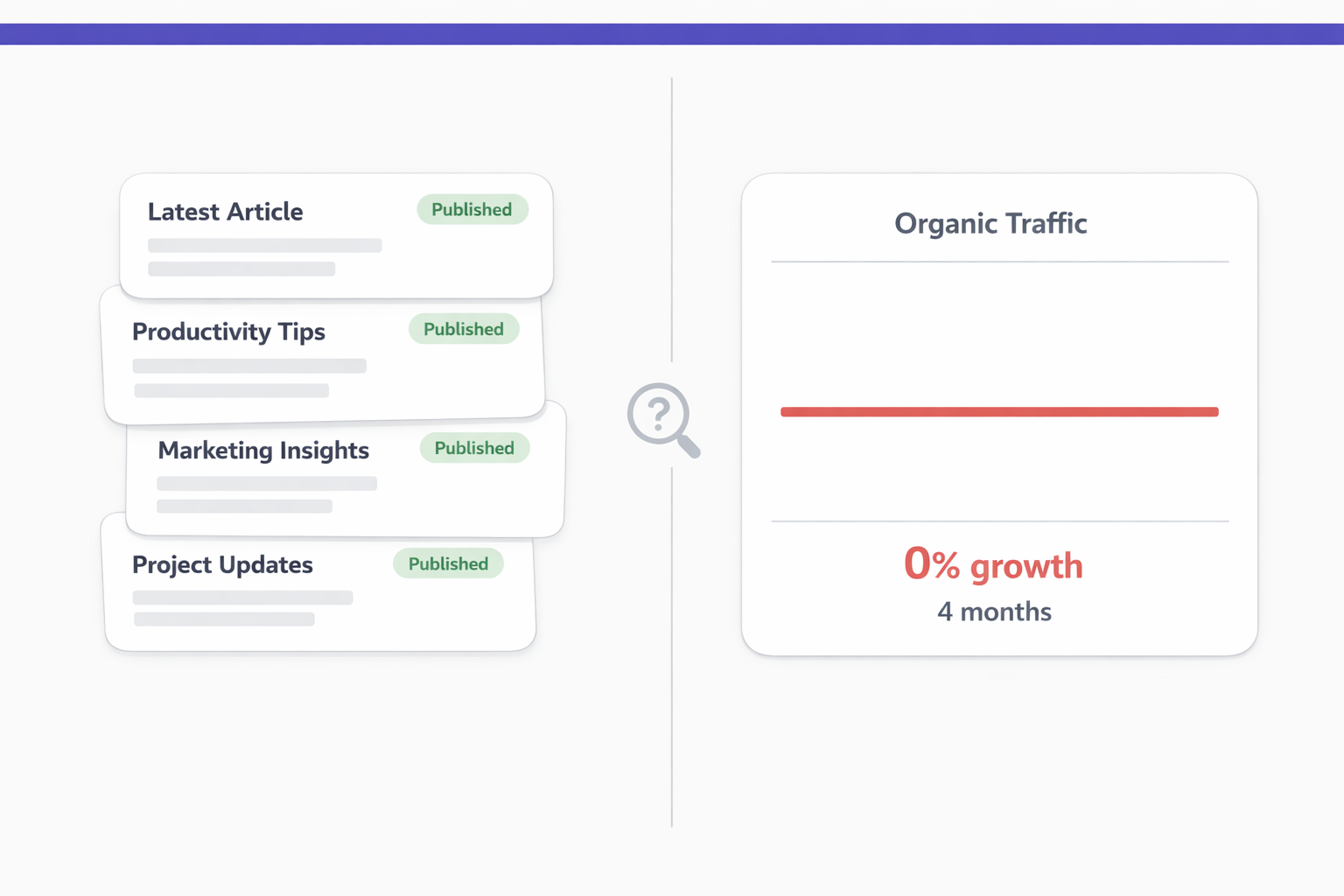 If you’re publishing consistently and traffic isn’t responding, the problem probably isn’t your content. It’s everything around your content.